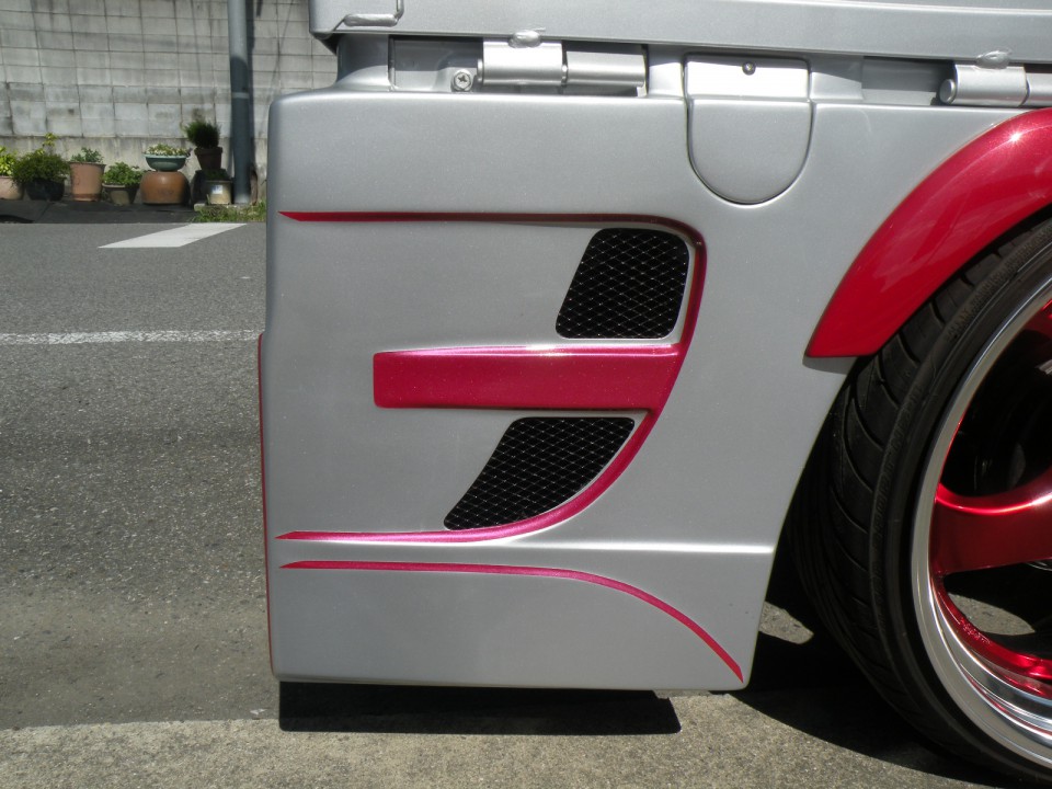 | フロントバンパー(グリル一体) ダクトサイド1連左右 アルミラス¥3,300(通常アミは、メッシュ/掲載画像はアルミラス) |